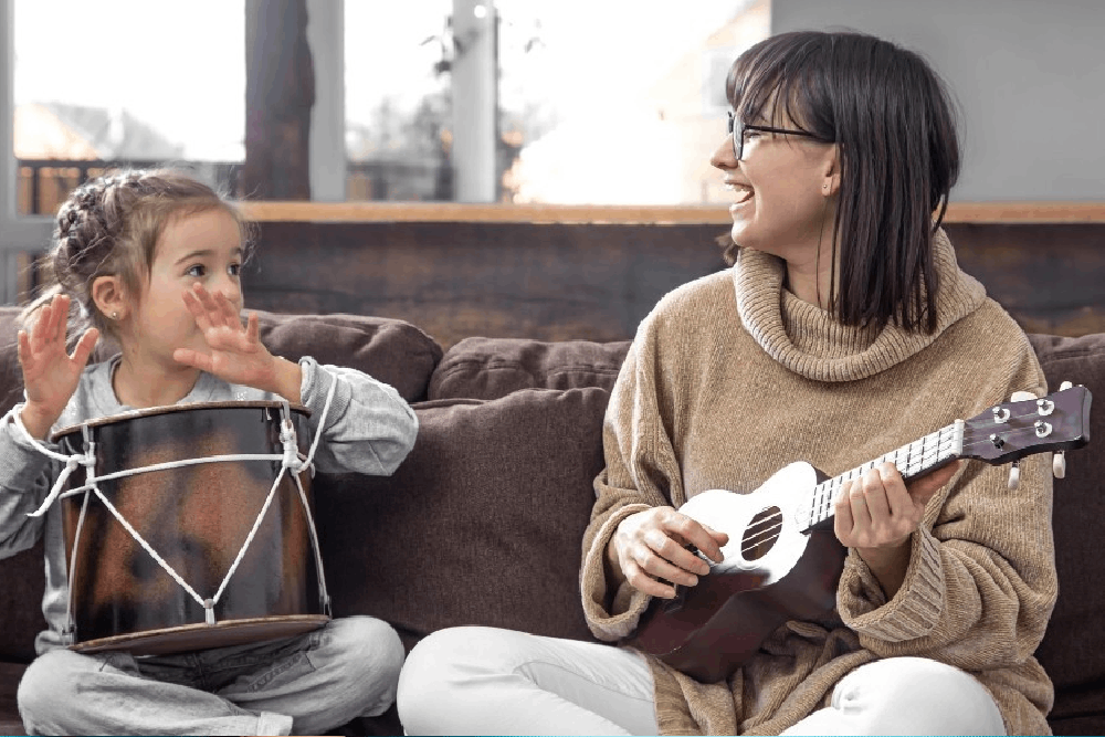 Uses rhythm, songs, and instruments to enhance emotional expression, focus, and overall cognitive and social development.